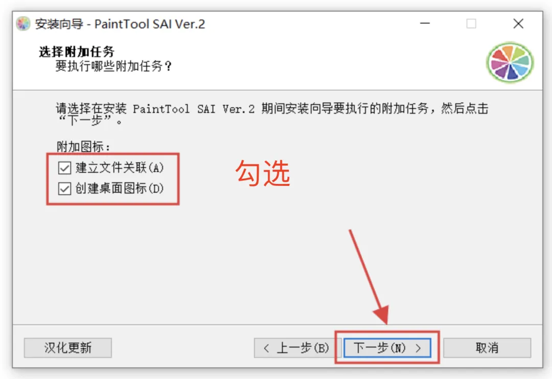 7、建议勾选:建立文件关联和 创建桌面图标,方便日后使用,然后点击:下一步。