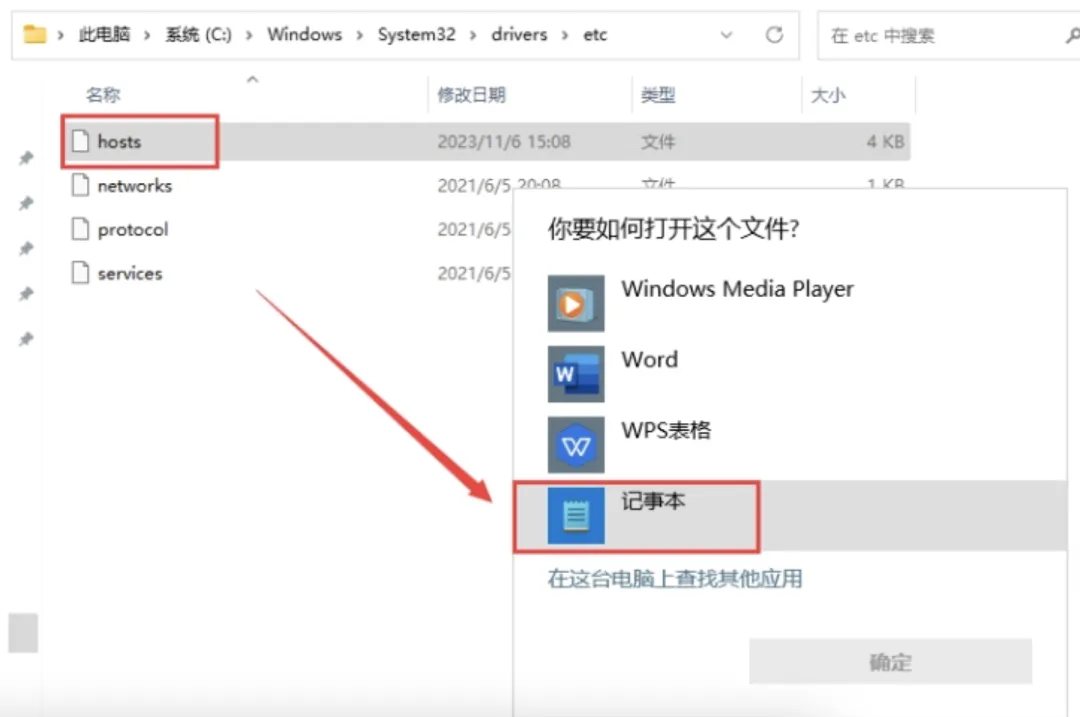 打开 C:\Windows\System32\drivers\etc\hosts文件(用记事本打开)