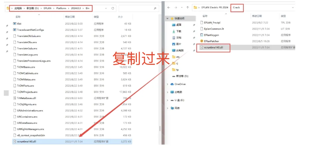从安装包内的 Crack文件夹中复制 vcruntime140.dll到软件安装目录(默认在 D:\EPLAN下,上面我们设置的安装路径)。