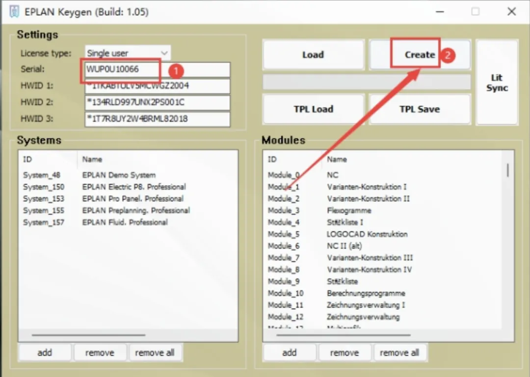 输入序列号 WUP0U10066,点击 Create生成许可证并保存到默认路径