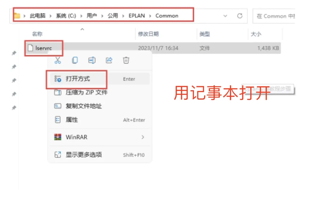 打开 C:\Users\Public\EPLAN\Common\lservrc文件