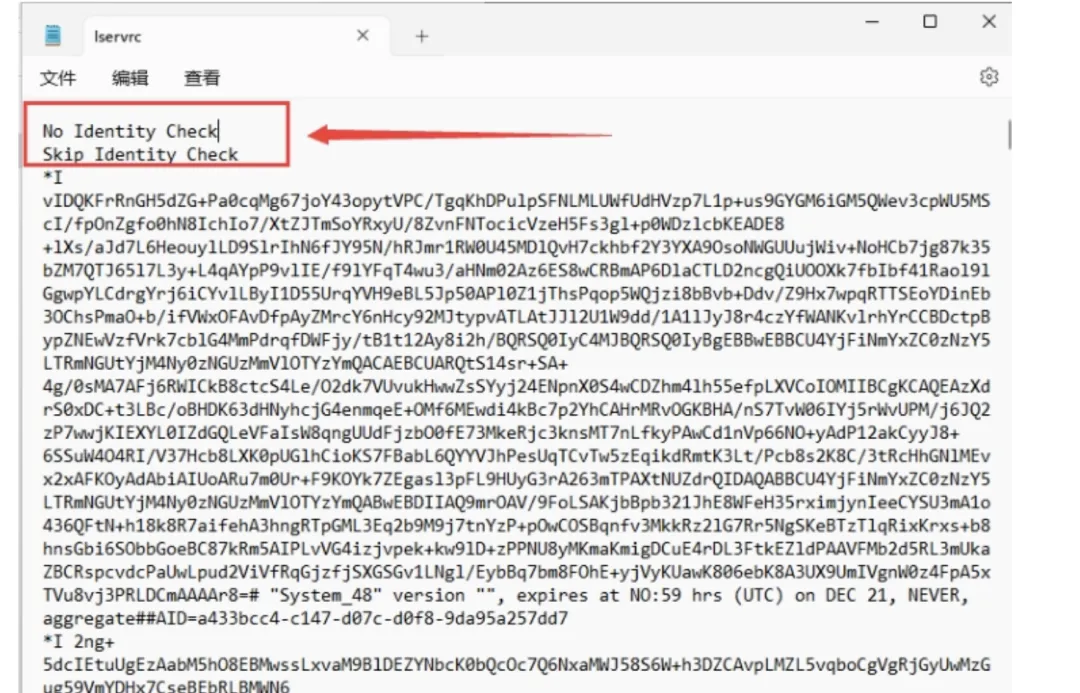 在第一行添加 No Identity Check Skip Identity Check后保存。