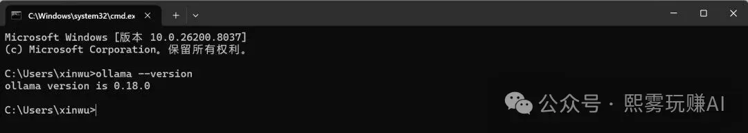 验证:ollama --version,出现版本号即成功