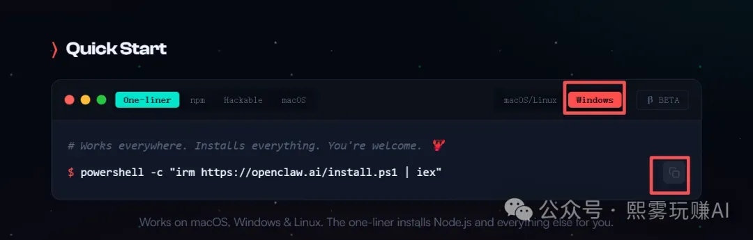 选择你的系统,复制到Windows PowerShell安装