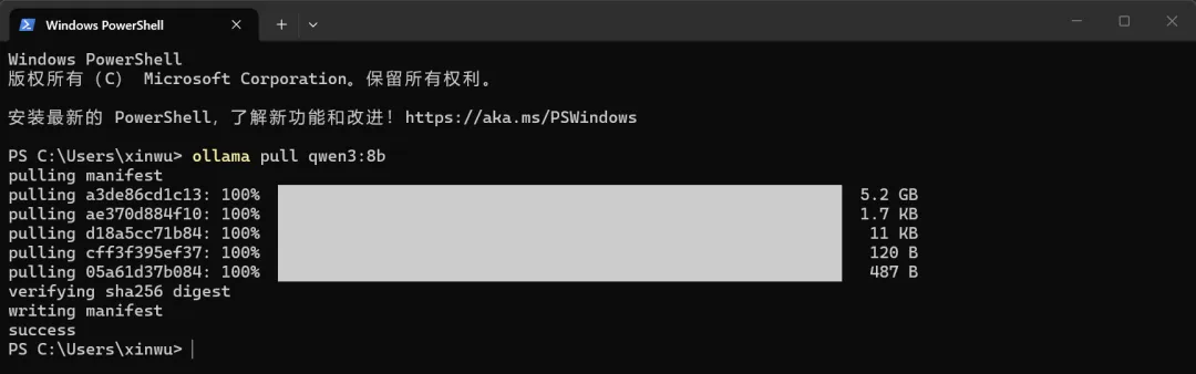 等待下载(约 10-30 分钟,取决于网速),出现「Success」即完成。 验证模型