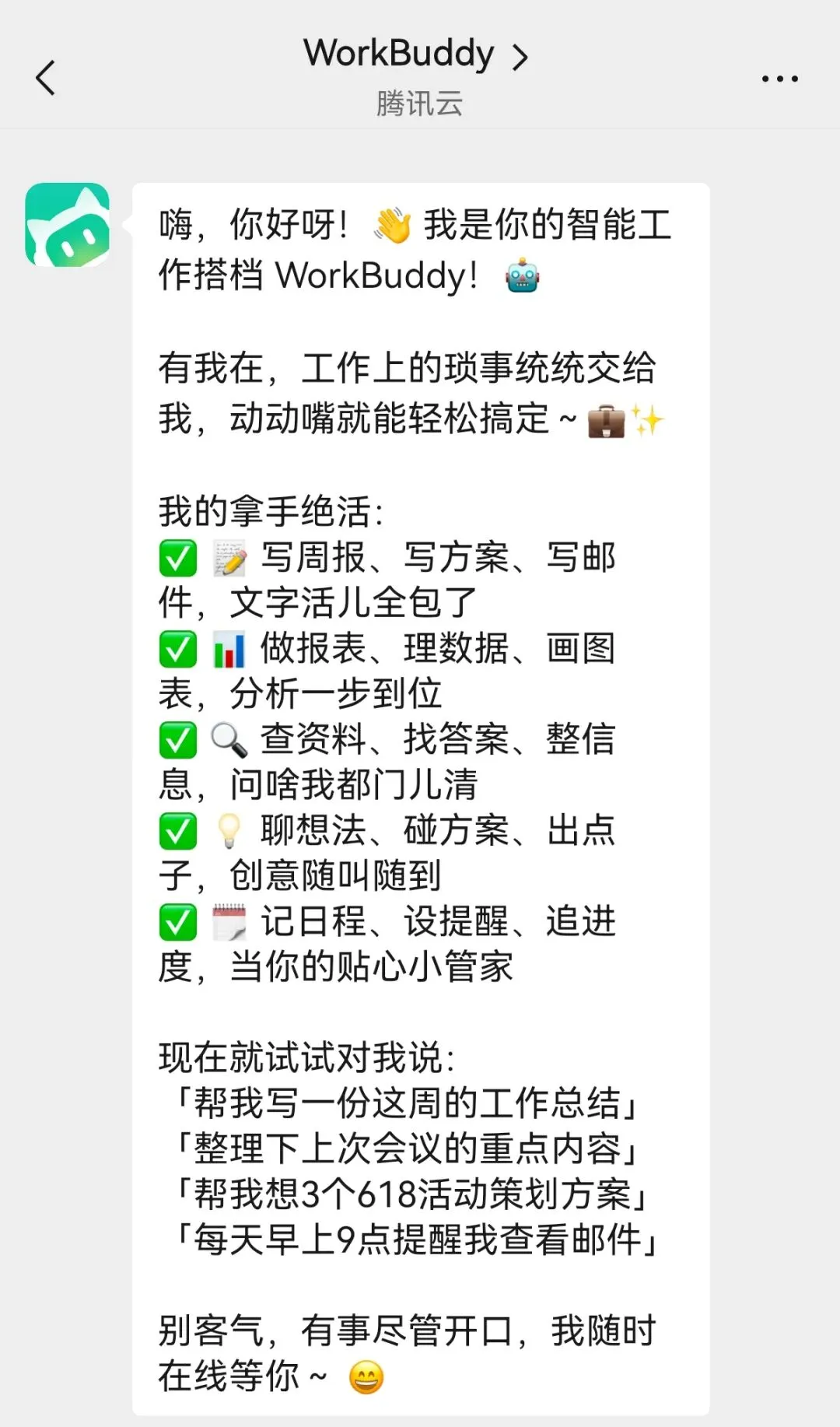 它会立刻回复“已设置提醒”,到点准时给你发消息,比闹钟还靠谱。