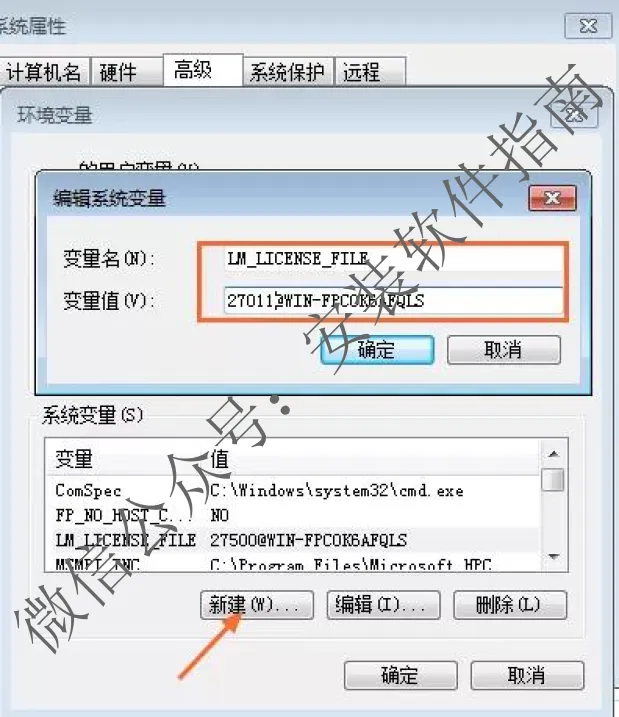 LM_LICENSE_FILE 在变量值中输入27011@主机名,点确定