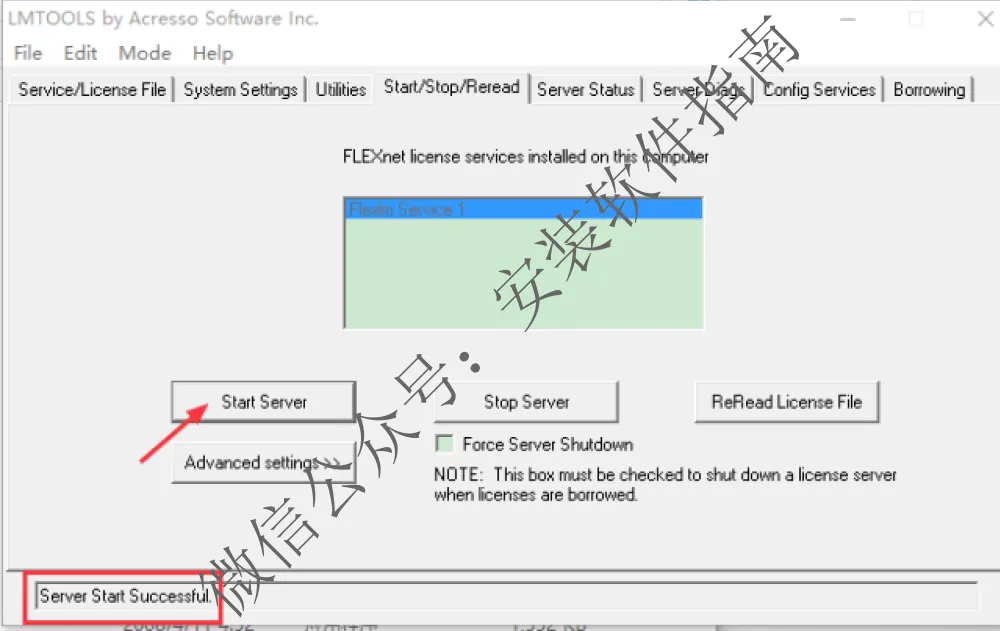 16.在Start/Stop/Reread中点击Start Server,在下方显示Server Start Successful,关闭窗口