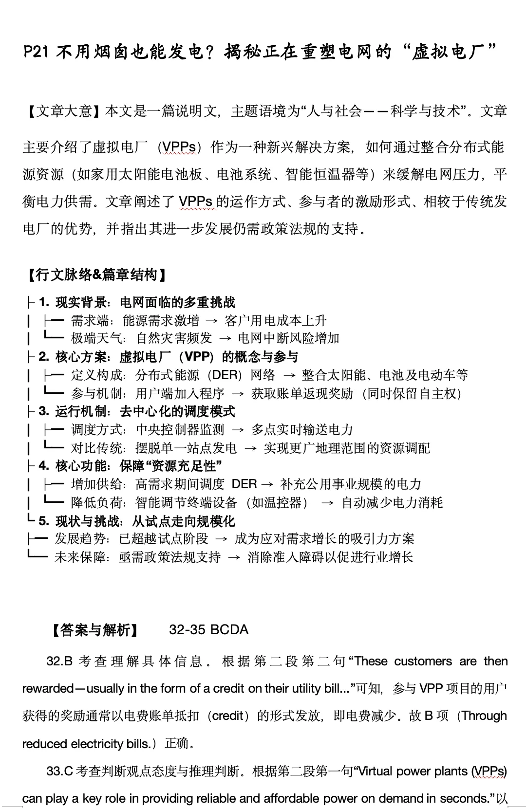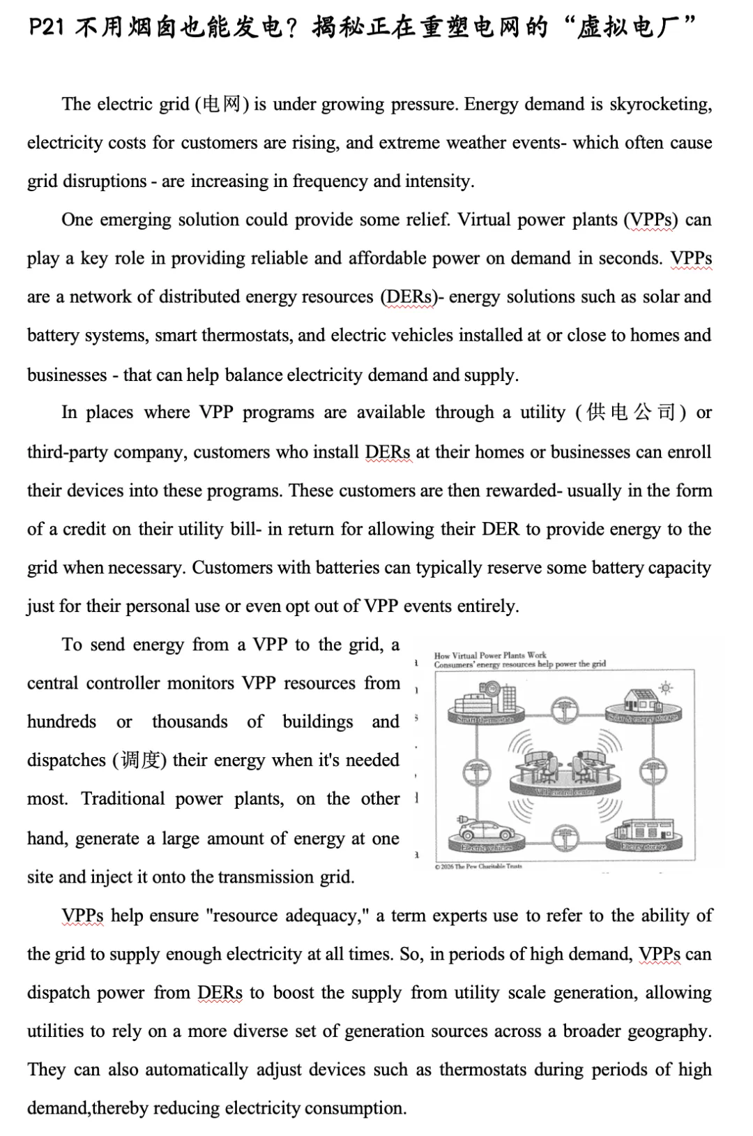【分析】本句主干为Virtual power plants (VPPs) are a network of distributed energy resources (DERs),是一个主系表结构。