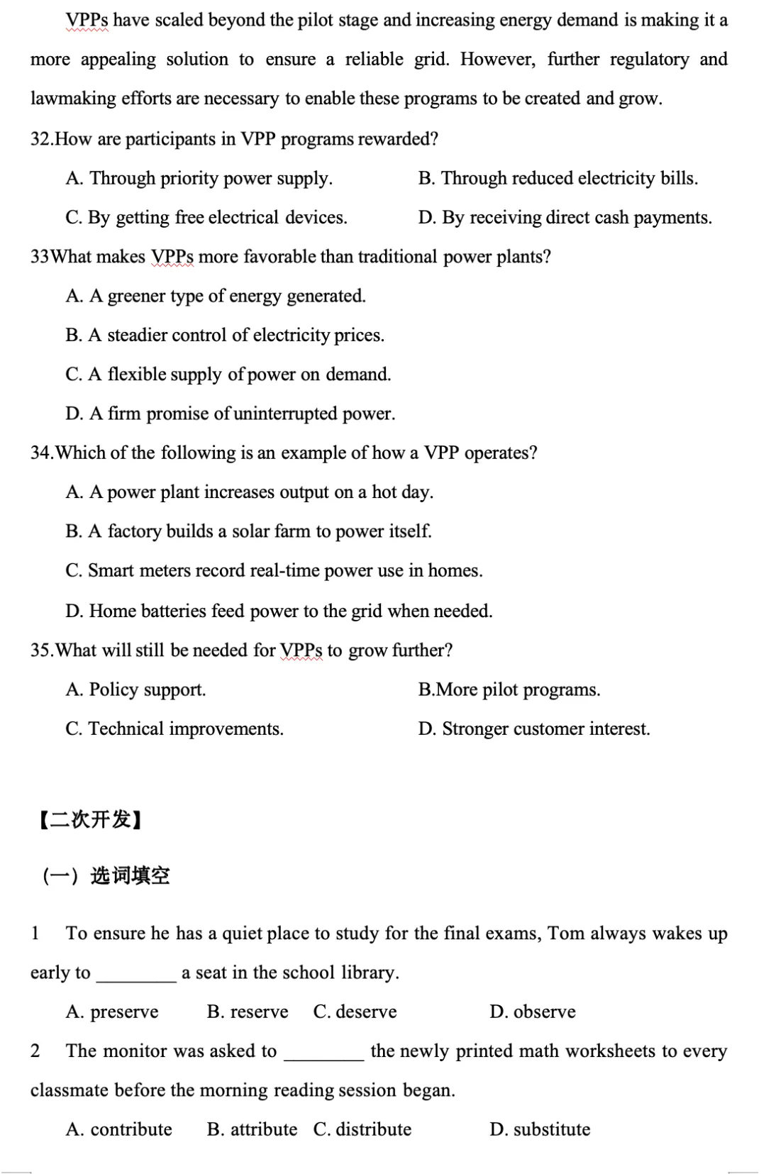 【句意】因此,在用电高峰期间,虚拟电厂可以调度分布式能源的电能,以增强来自公用事业规模发电的供应,从而使电力公司能够依赖更广泛地理区域内更多样化的发电来源。