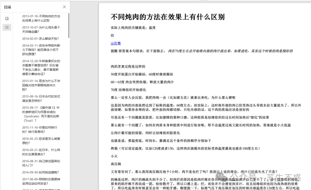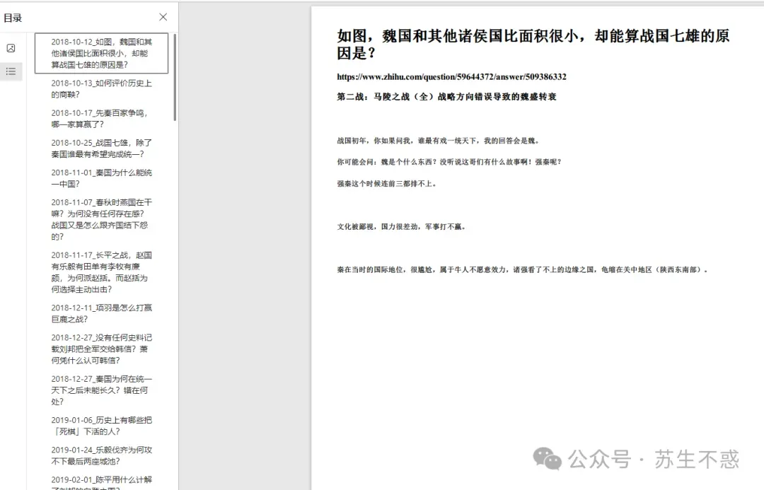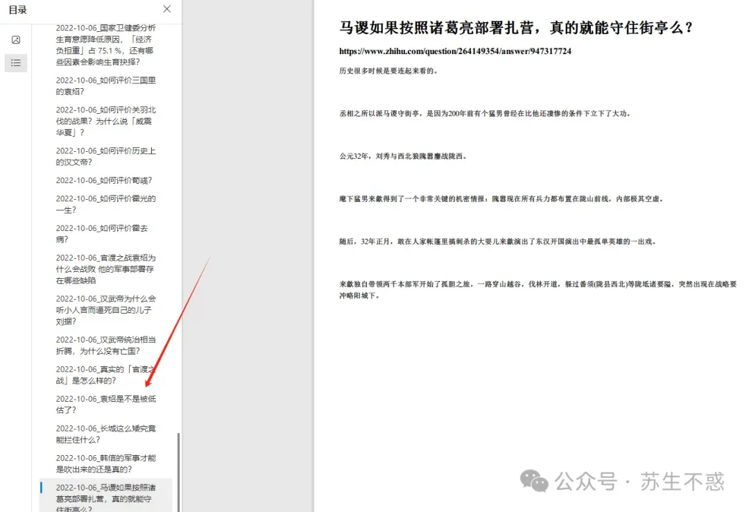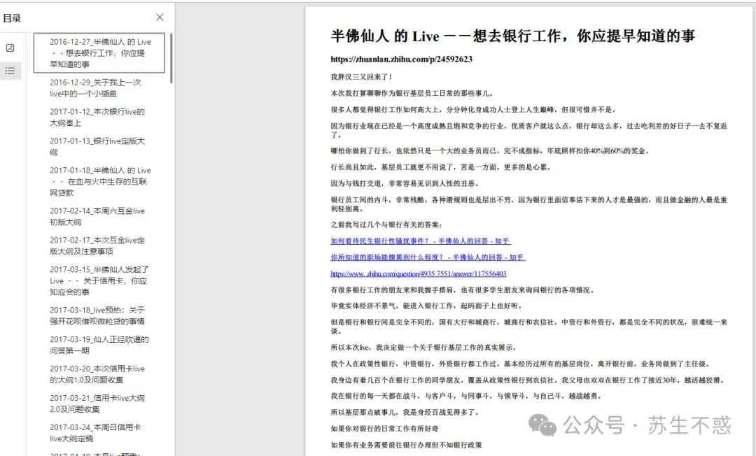 每篇文章都有原知乎文章链接,点击左侧书签跳转到对应回答。