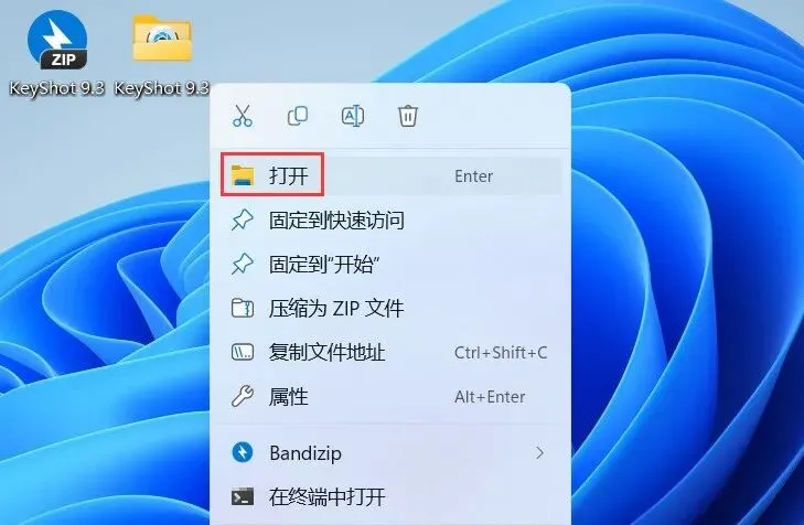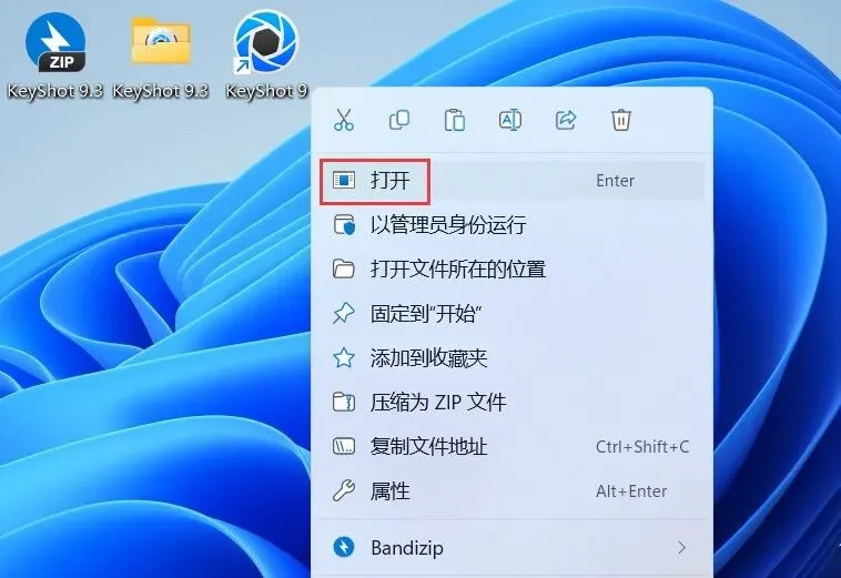 20、回到桌面,右键桌面上的【KeyShot 9软件图标】,点击【打开】