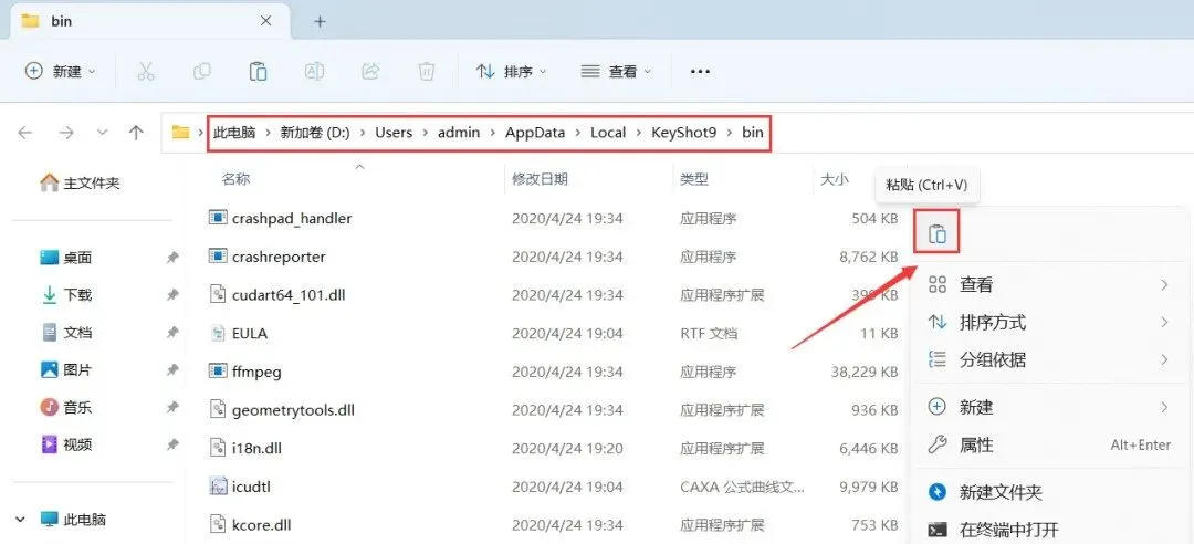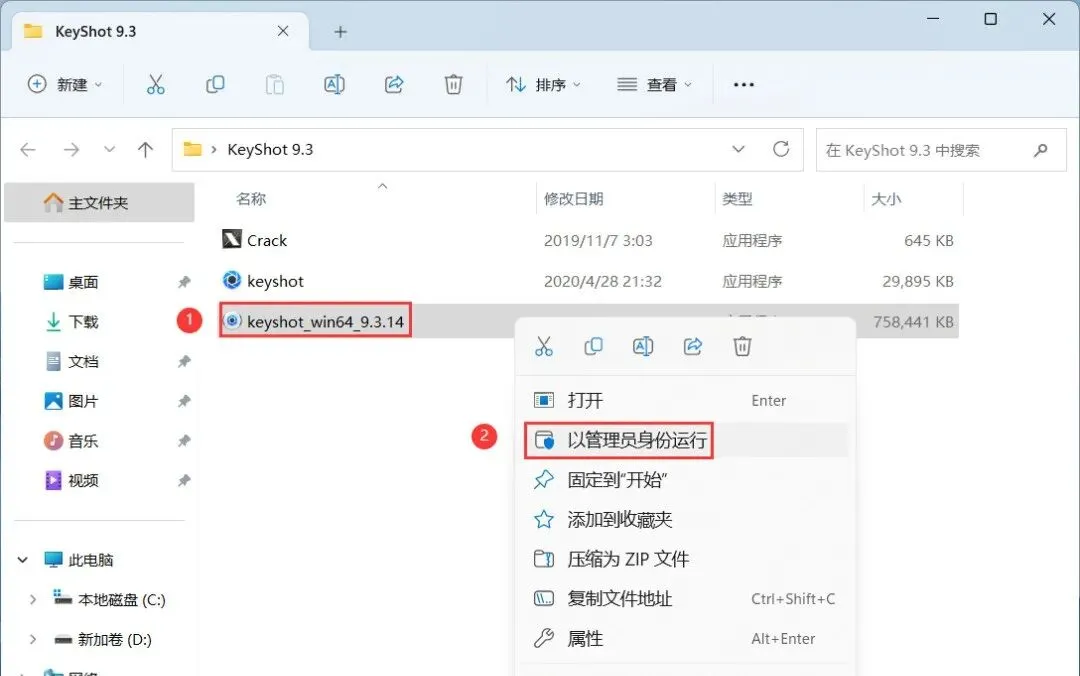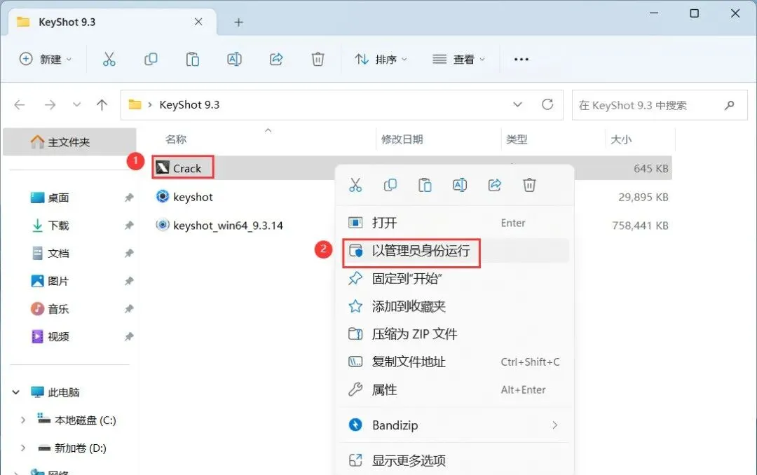 15、回到KeyShot 9.3文件夹,找到【Crack】程序,右键选择【以管理员身份运行】它
