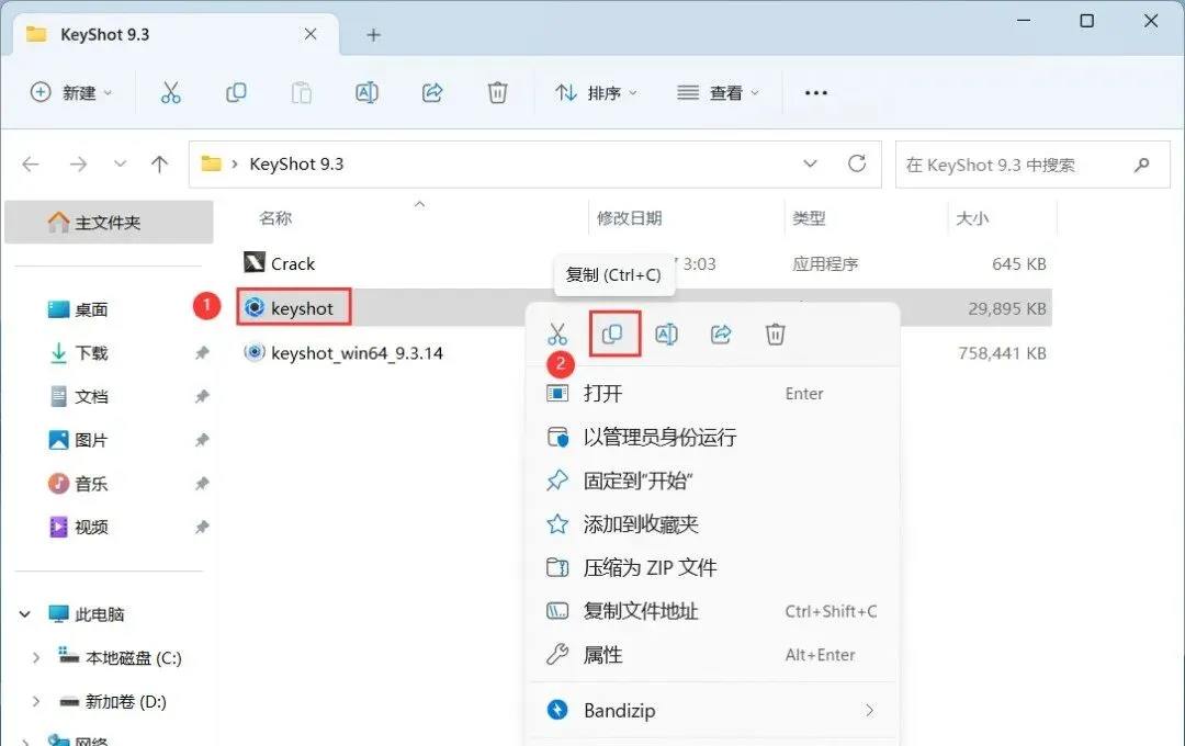 11、回到KeyShot 9.3文件夹,找到【KeyShot】程序,再右键点击【复制按钮】