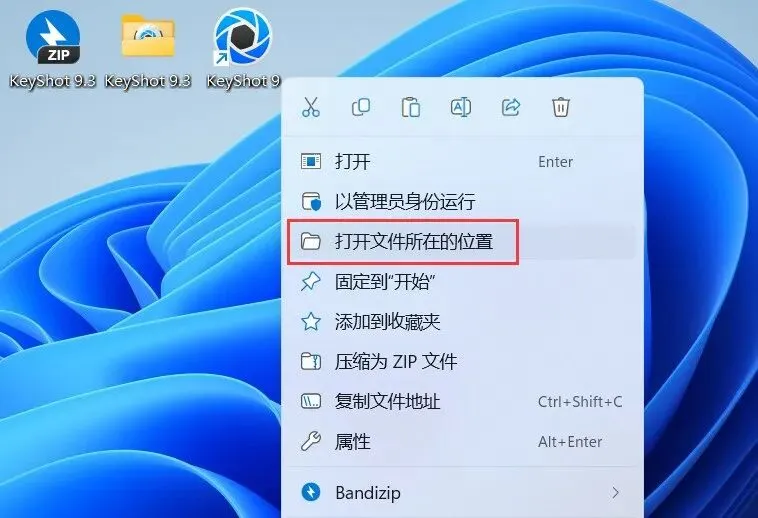 12、回到桌面,右键桌面上的【KeyShot 9软件图标】,点击【打开文件所在的位置】