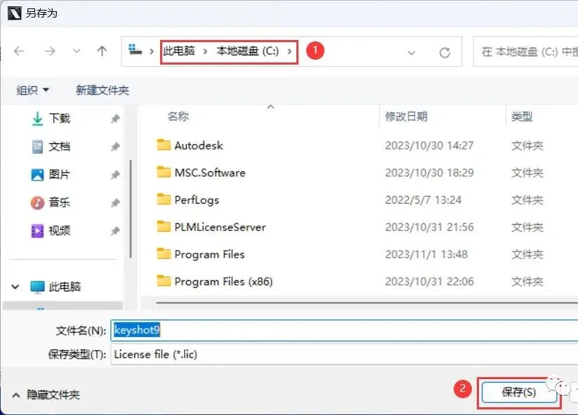 22、选择路径到C盘,找到并选中【Keyshot9】程序,再点击【打开】