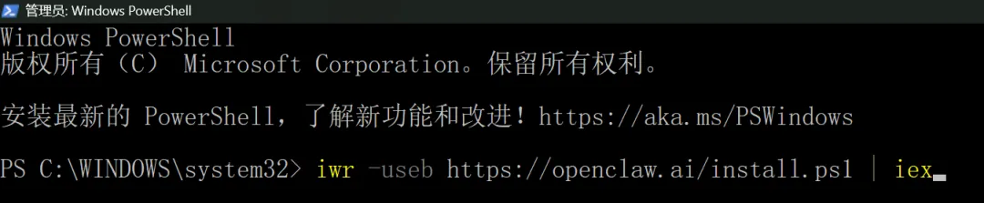iwr -useb https://openclaw.ai/install.ps1 | iex