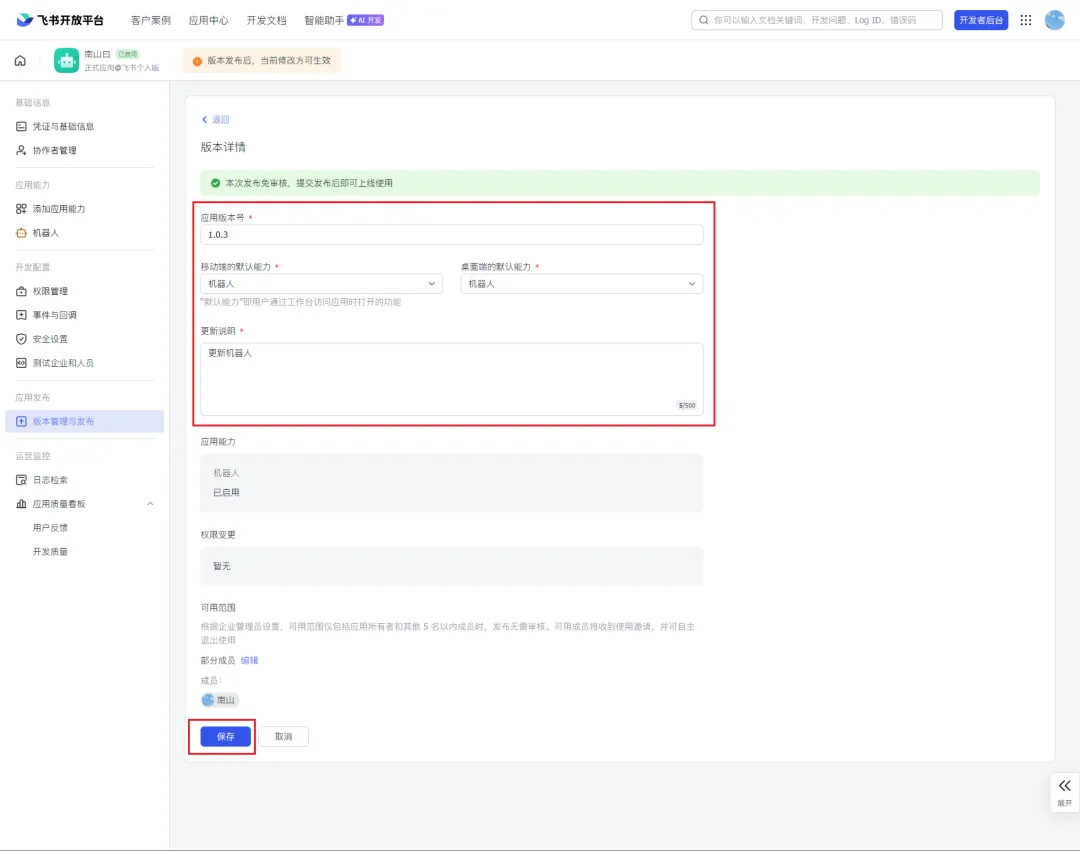 https://open.feishu.cn/app/cli_a93c3d2ed8b89cee/baseinfo