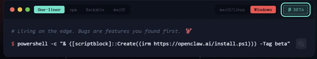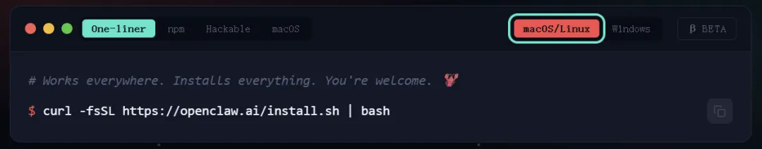你是否在安装openclaw的时候,会发现很多不同种类的命令,然后挨个输入后发现经常报错?其实这主要 就是命令和系统不匹配的原因,其实openclaw的官网早就给大家列出了不同的命令: