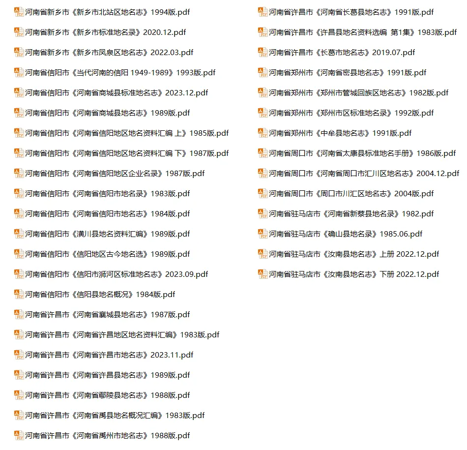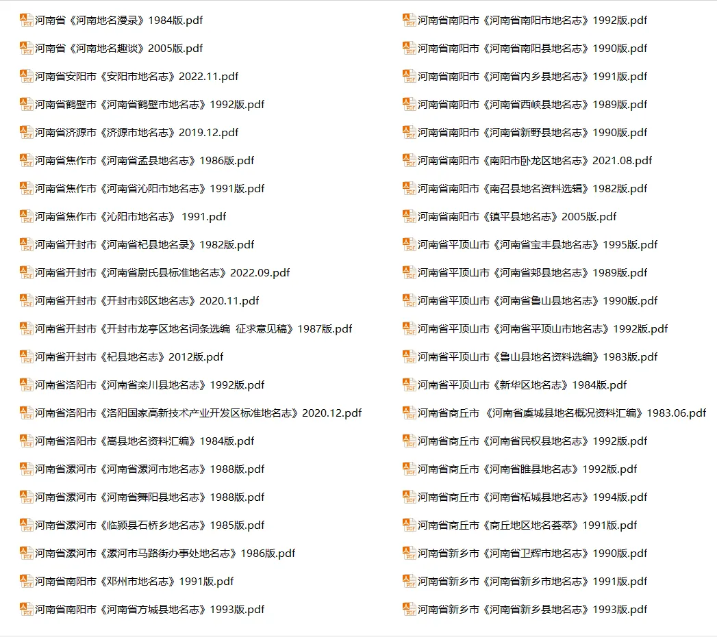 河南省地名志目录