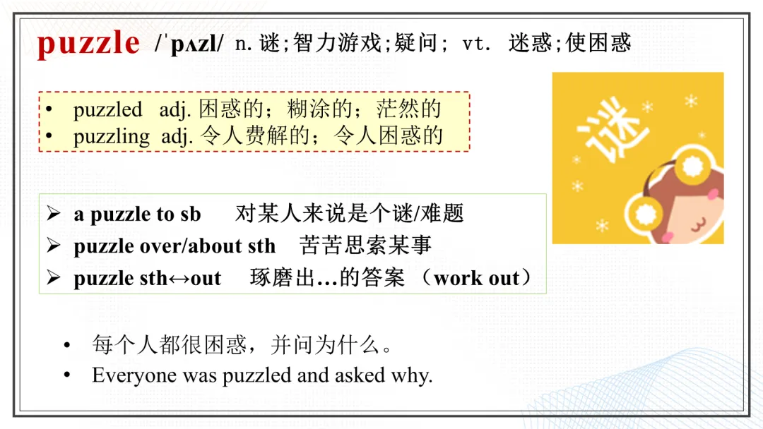 ③词性拓展:这部分扩展该词比较重要或常考的派生词,让学生能够掌握该词相关的各种词性,这对于高考题型——语法填空有至关重要的作用,需要重点注意;