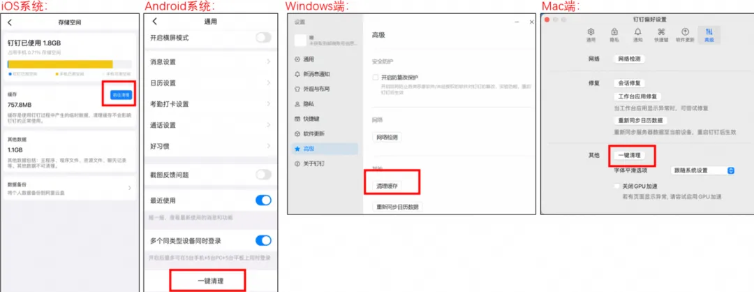 一、钉钉清理方法(手机端+电脑端,最常用,优先清理)