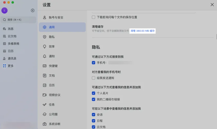 2. 电脑端飞书清理(Windows+Mac通用,重点腾空间)