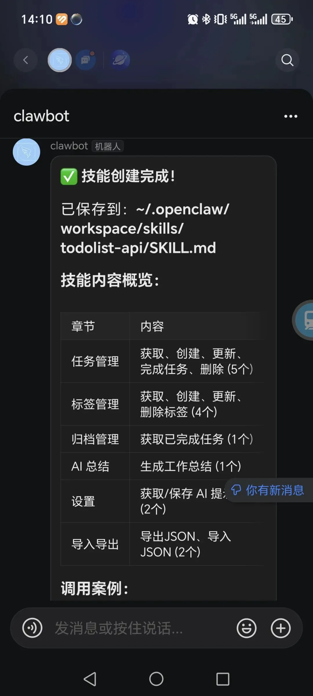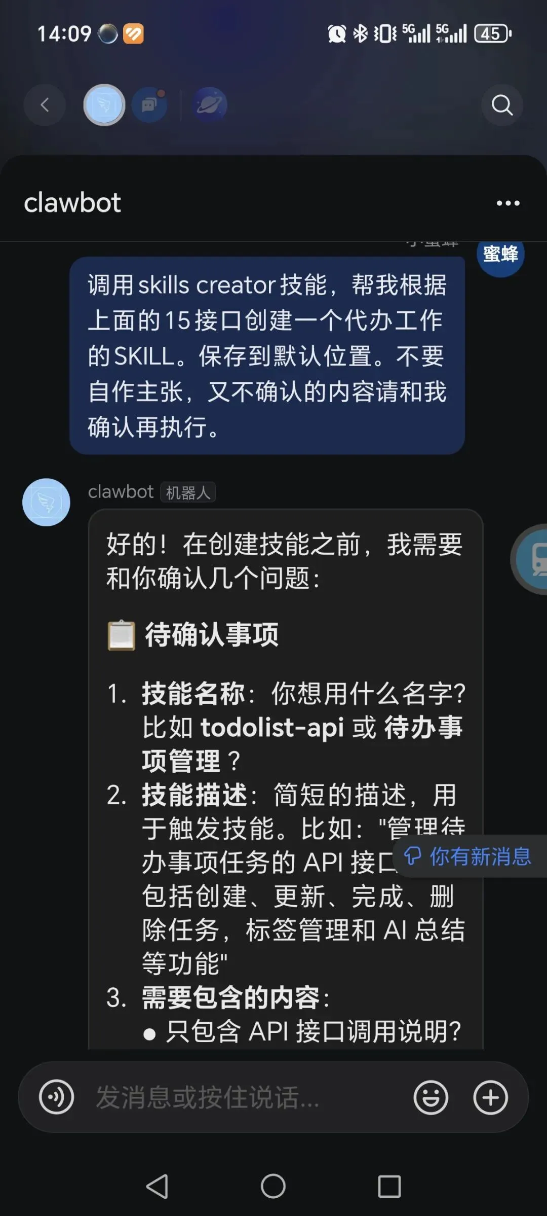 因为这个需求是偏定制化的,所以我将小助手的接口封装成一个通用的skill,让龙虾通过这个skill和龙虾对接起来。
