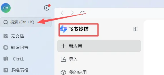 访问飞书妙搭(搜索引擎搜"飞书妙搭"就行)