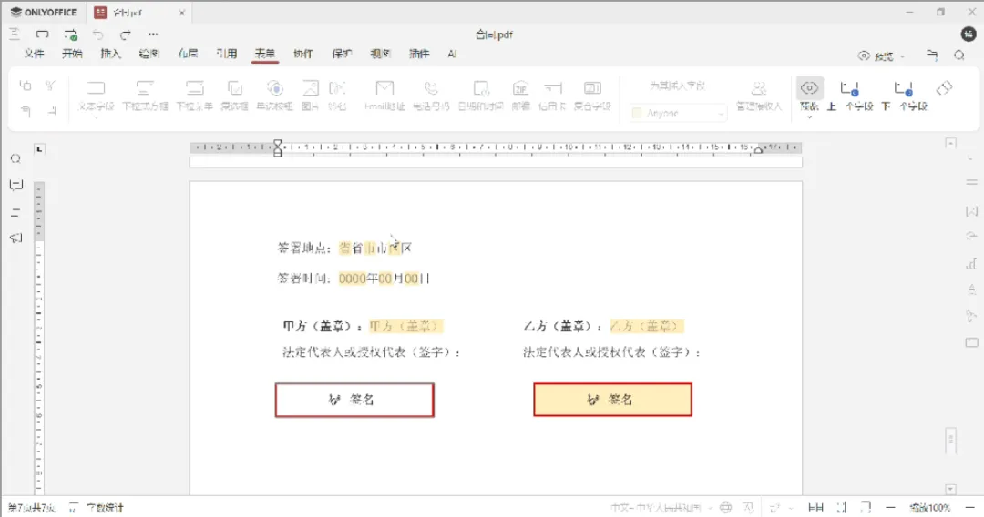 在ONLYOFFICE编辑器中一键打开您的PDF表单,即刻进入高效填写模式。