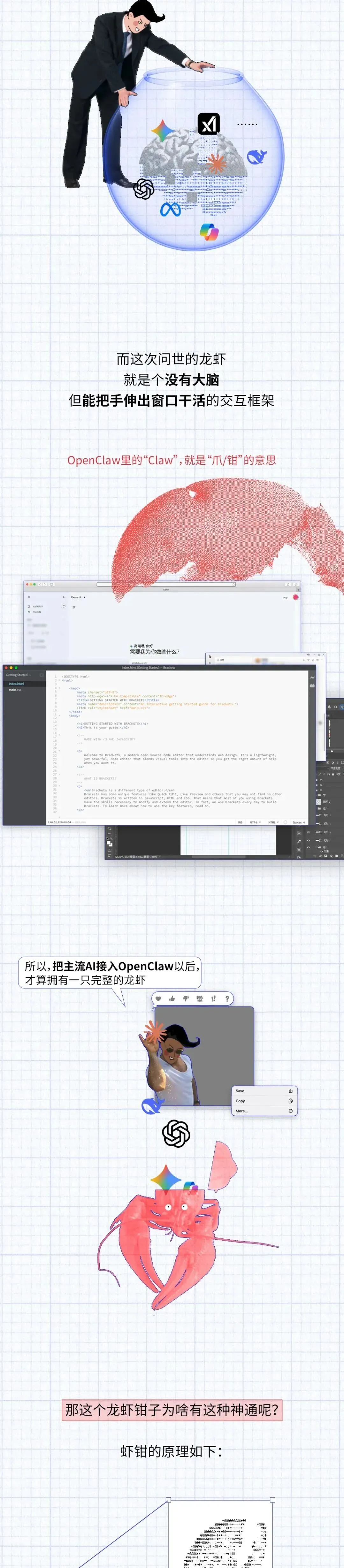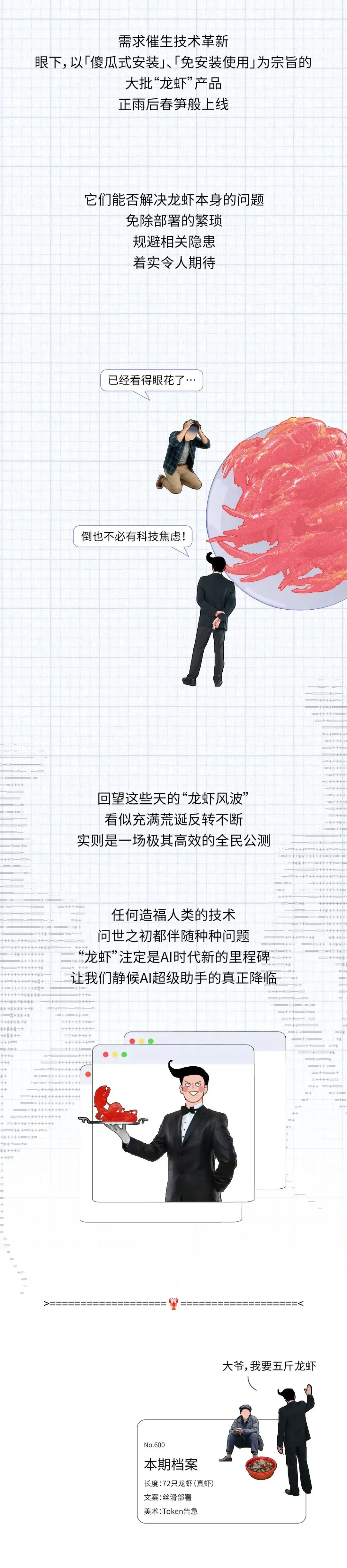 · 在使用体验上,龙虾的另一大特色是“活人感极强”。以往的AI,用户不搭话,它就永远沉默;而龙虾的机制则是「心跳」:每隔30秒,自己给自己发一条消息,反思有没有事情做,有的话就去做,没有的话就“没事,继续睡”。当然,这种活人感的代价,是燃烧的Tokens。