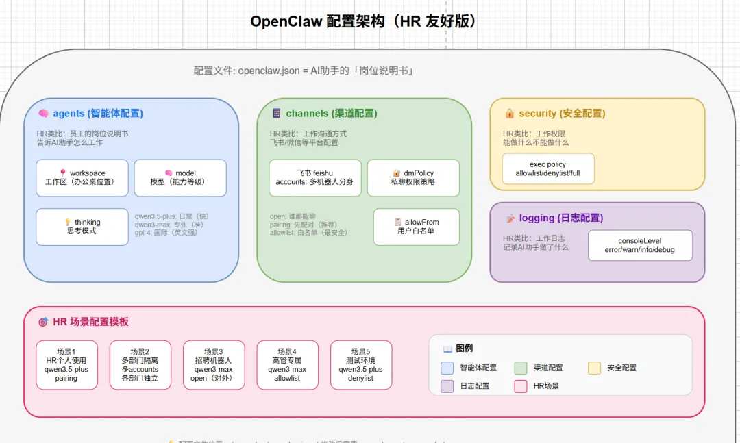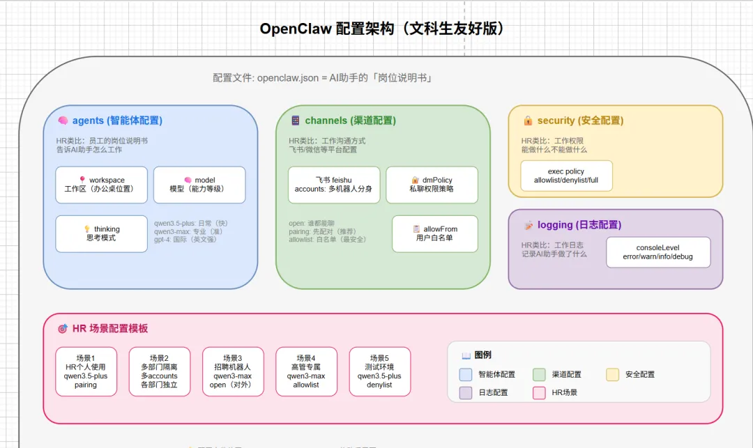 • ✅ 每个参数都有通俗解释(用 HR 工作举例) • ✅ 每个配置都有操作步骤(复制粘贴就能用) • ✅ 所有内容都经过官方核对(不会出错) • ✅ 大量 HR 场景案例(招聘、考勤、员工关系等) • 🦞 龙虾认证:零基础也能看懂! • ❓ 看到配置文件就头疼,全是英文和代码 • ❓ 担心配错了把系统搞坏 • ❓ 想要一个能看懂、照着做的指南