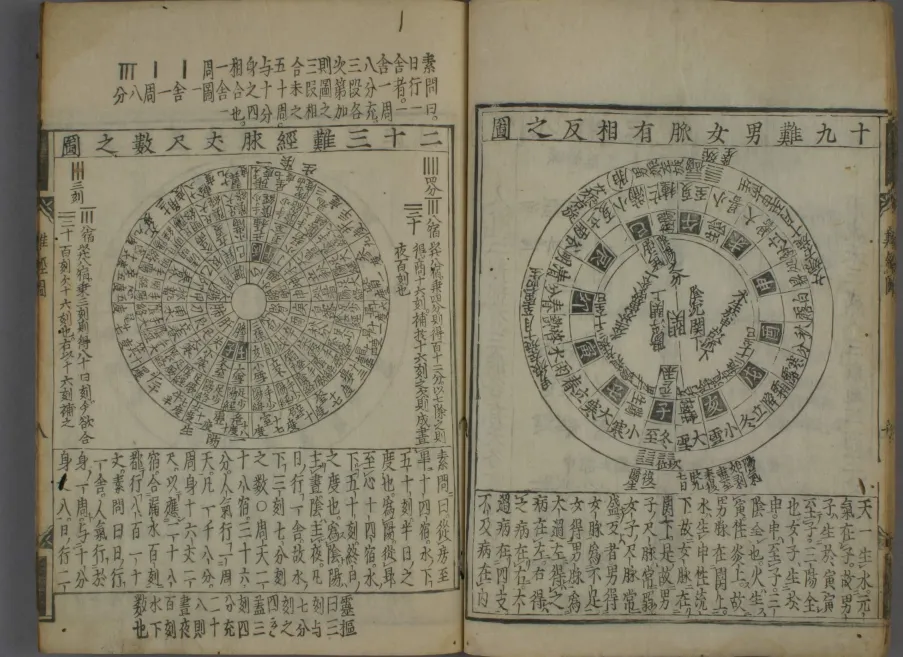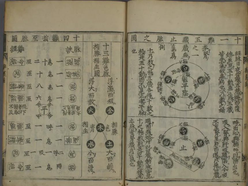 :阐明十二经脉的循行规律与脏腑关系,如“手太阴、阳明为金,足少阴、太阳为水”的五行生克逻辑,配以经络走向图辅助理解。 - 脏腑篇