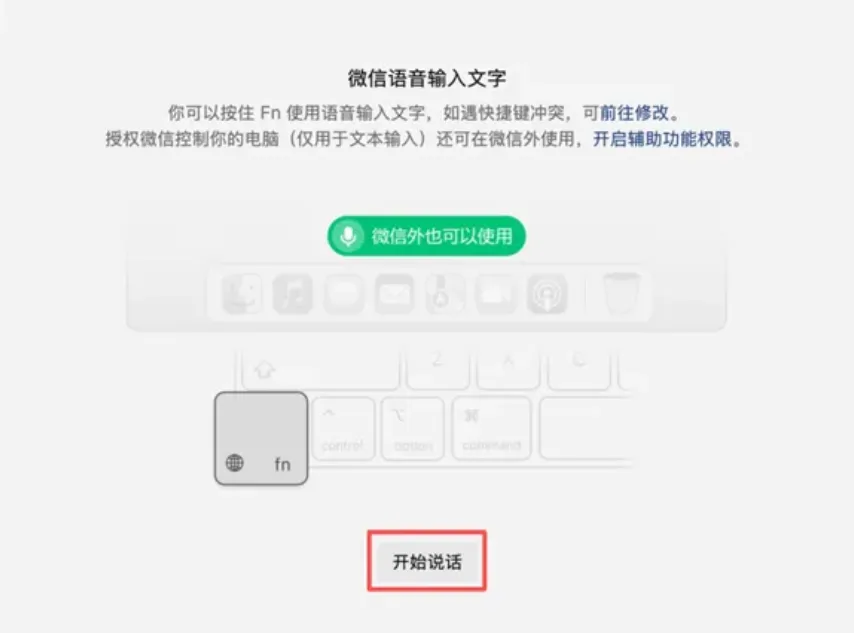 快捷键冲突别慌:打开「微信 > 设置 > 快捷键」,自定义专属语音输入快捷键,再也不怕和其他软件撞车 微信外使用授权:Mac 端需开启辅助功能权限,Windows 端直接调用,登录微信就能用,无需额外设置 精准转写超省心:支持普通话、方言甚至中英文混合转写,还能自动优化语气词、智能标点断句,写会议记录、长文档直接一步到位!