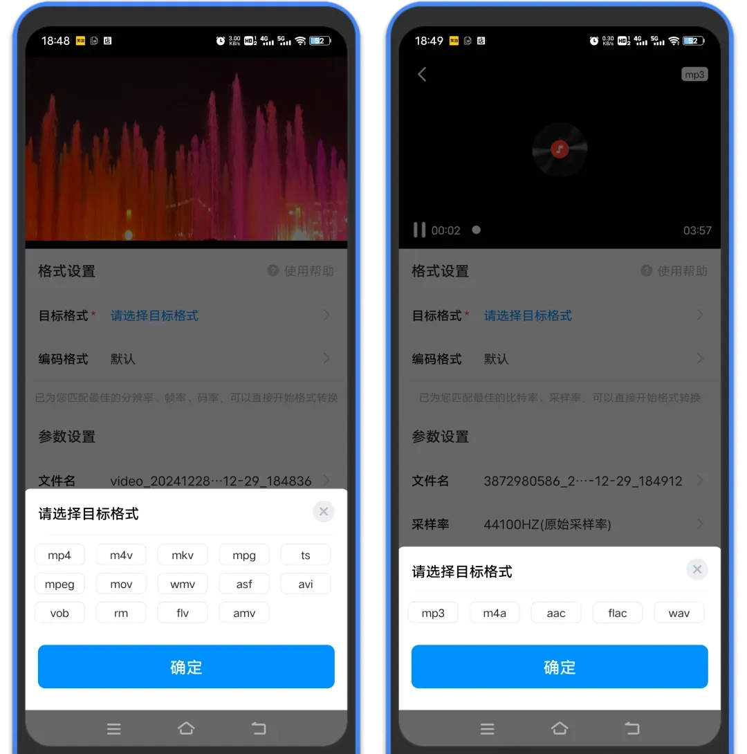 2、常见的视频音频格式转换比如mp4,m4v,mkv,mp3,m4a,aac,flac,wav这些都包含,可以满足日常需要。