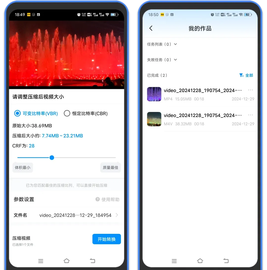 4、视频压缩功能之前很多人问过我,亲测从38MB压缩为15MB,压缩效率很高,而且还可以自己调节压缩体积。