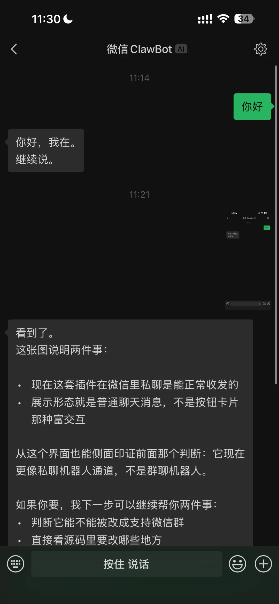 大功告成!现在你的 AI 助手已经可以在微信上工作了。