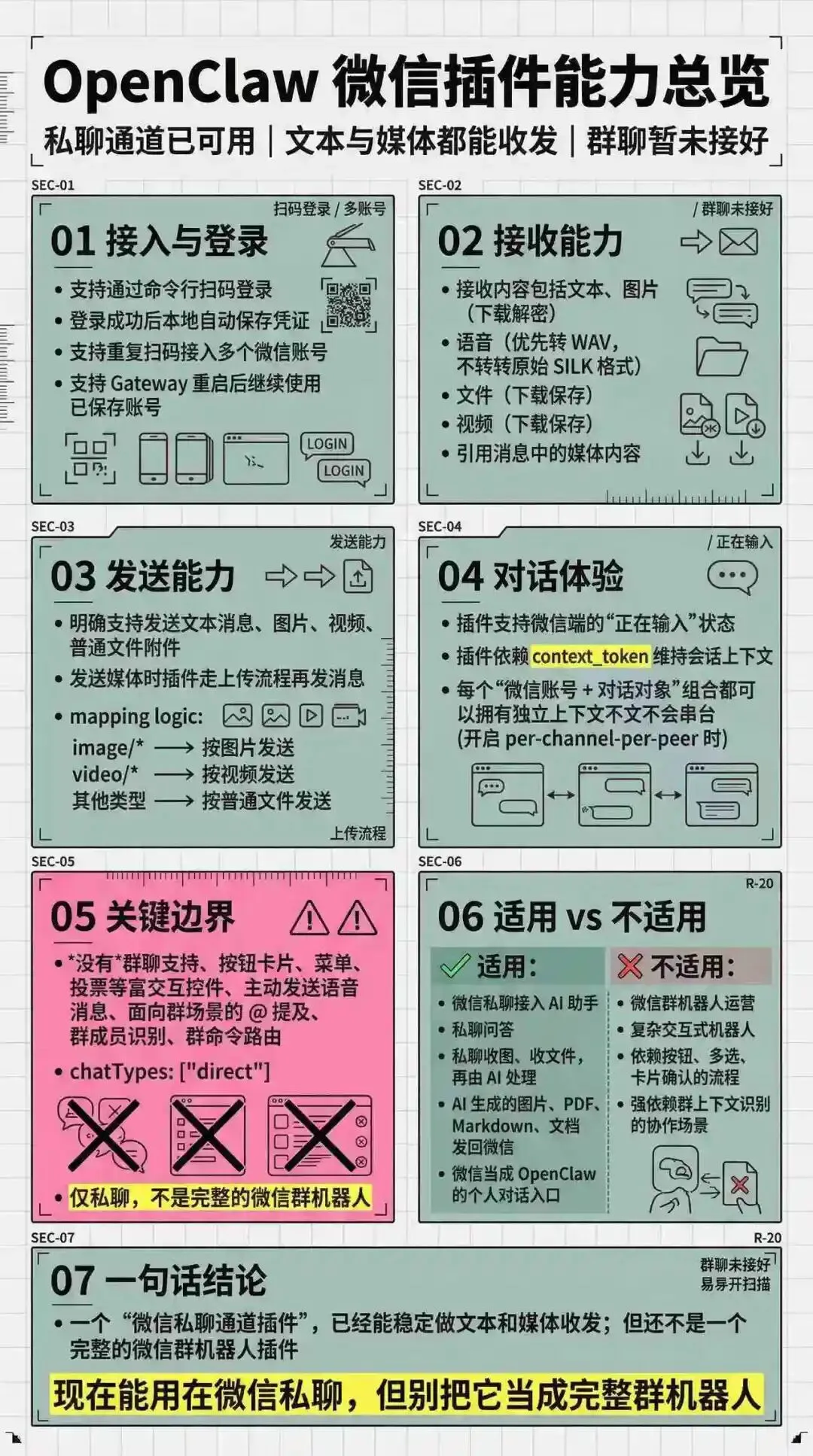 OpenClaw 微信插件支持收发以下类型的消息: