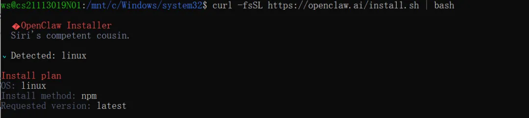 curl -fsSL https://openclaw.ai/install.sh | bash