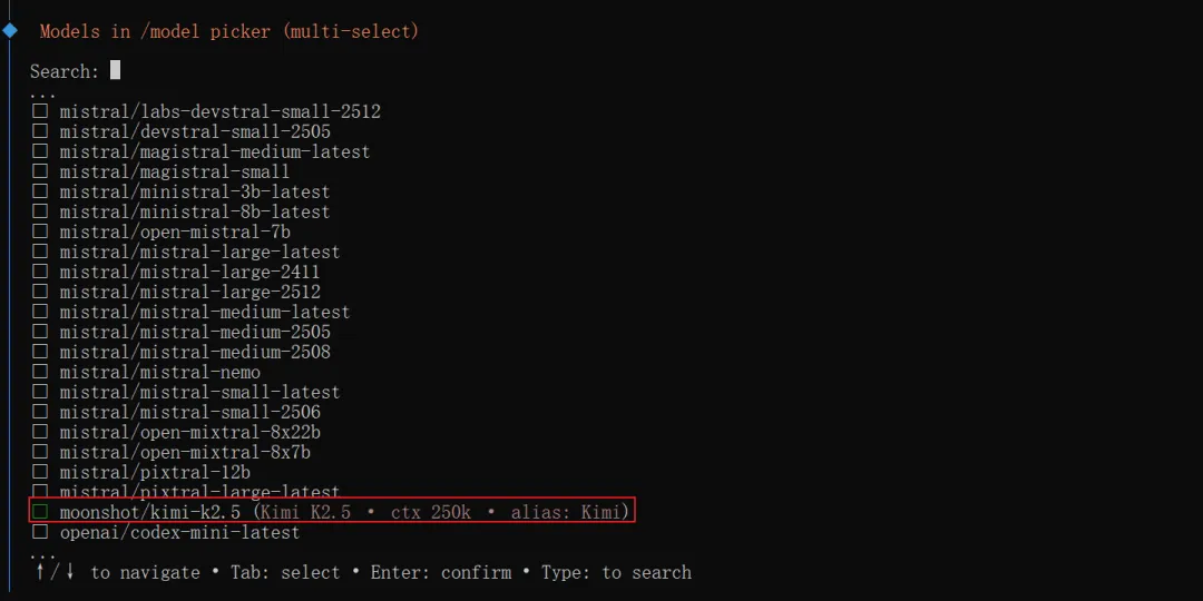/model <模型ID> 临时切换当前会话使用的模型,例如 /model moonshot/kimi-k2.5 ,此切换仅影响当前对话。使用 /model reset 可清除覆盖,回归默认模型。