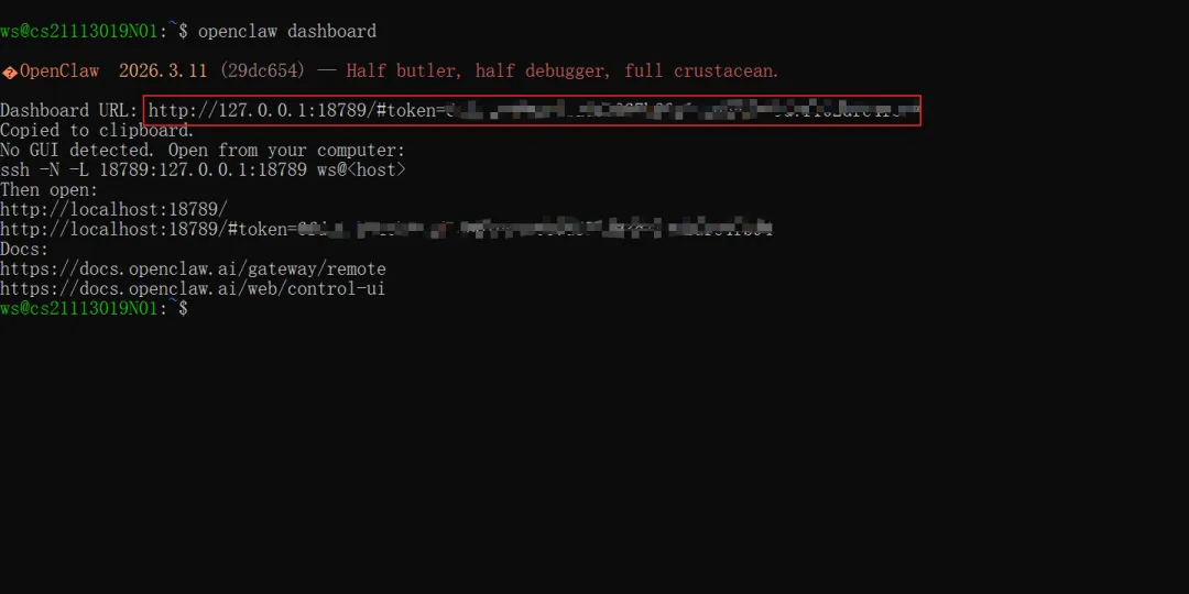 openclaw dashboard 打开本地的 Web 控制台(默认地址 http://localhost:18789 ),提供可视化的管理界面,是部署后最快的聊天入口。