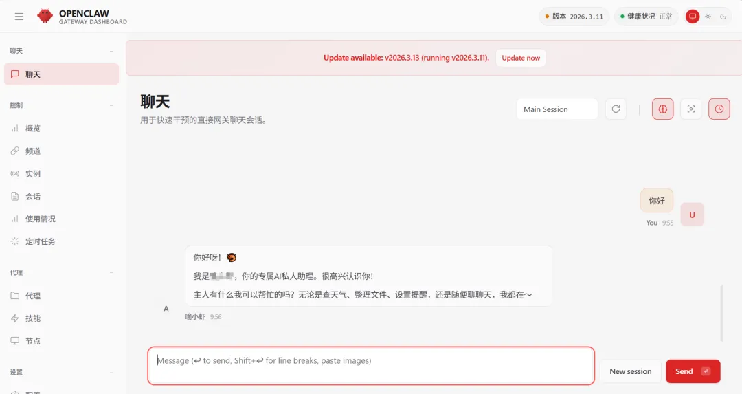 终端 CLI 命令:修改的是系统规则,影响是全局的、持久生效的。例如配置模型、管理渠道、安装技能。