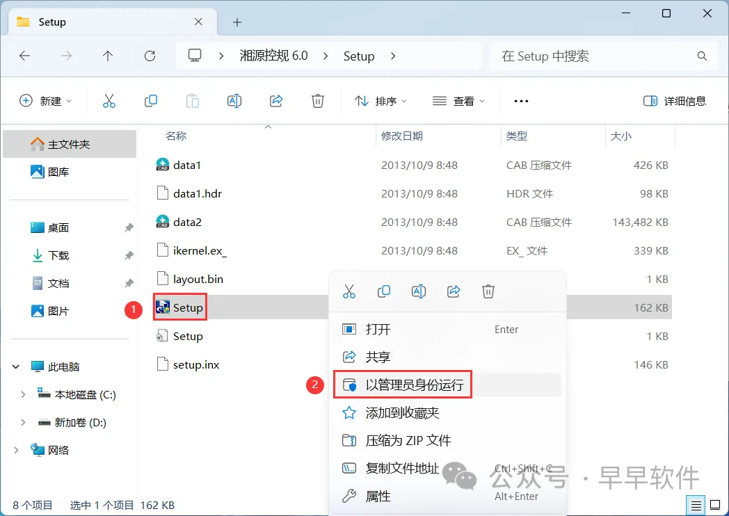4、找到【Setup】应用程序,右键选择【以管理员身份运行】它