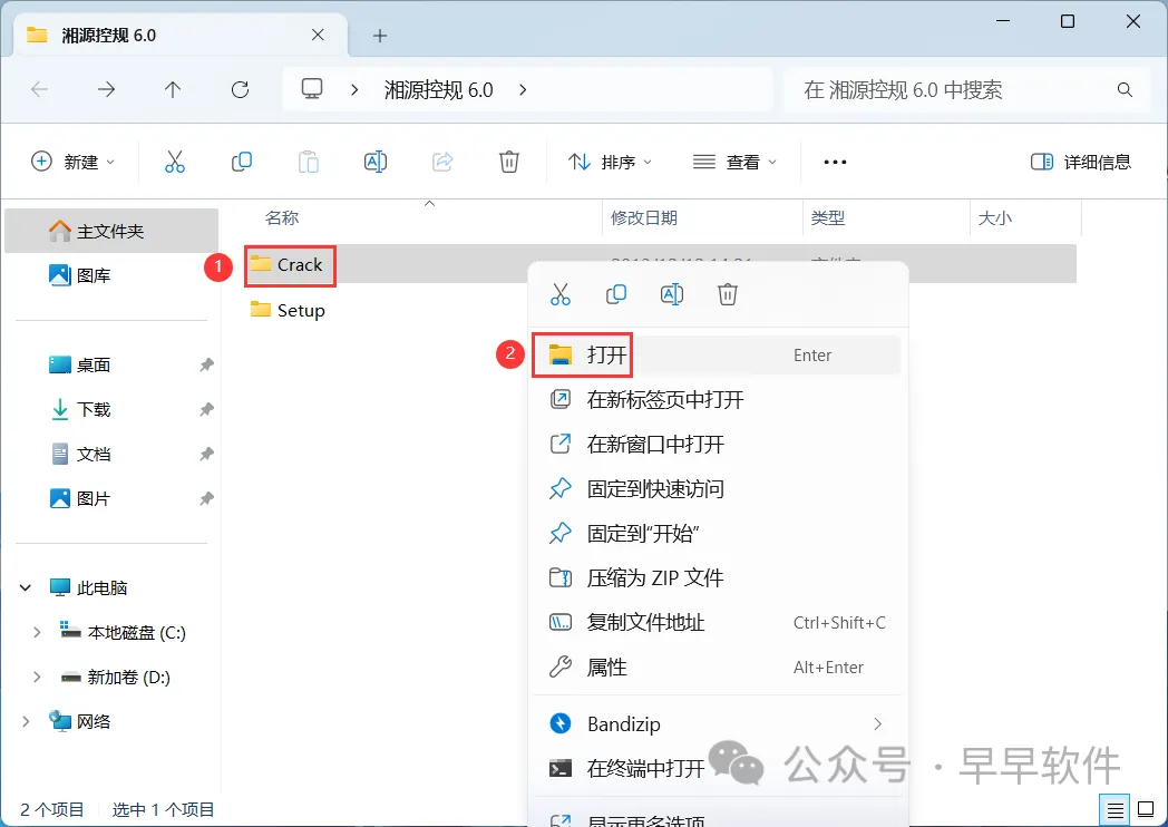 12、回到湘源控规 6.0文件夹,找到【Crack】文件夹,右键【打开】它