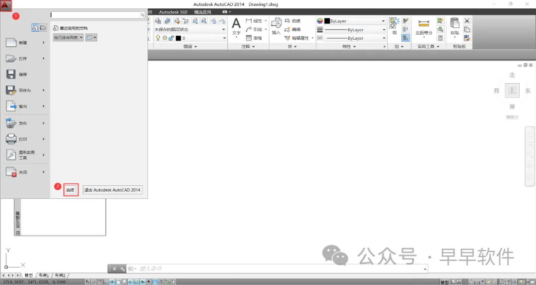 18、点击左上角的【AutoCAD图标】,再点击【选项】