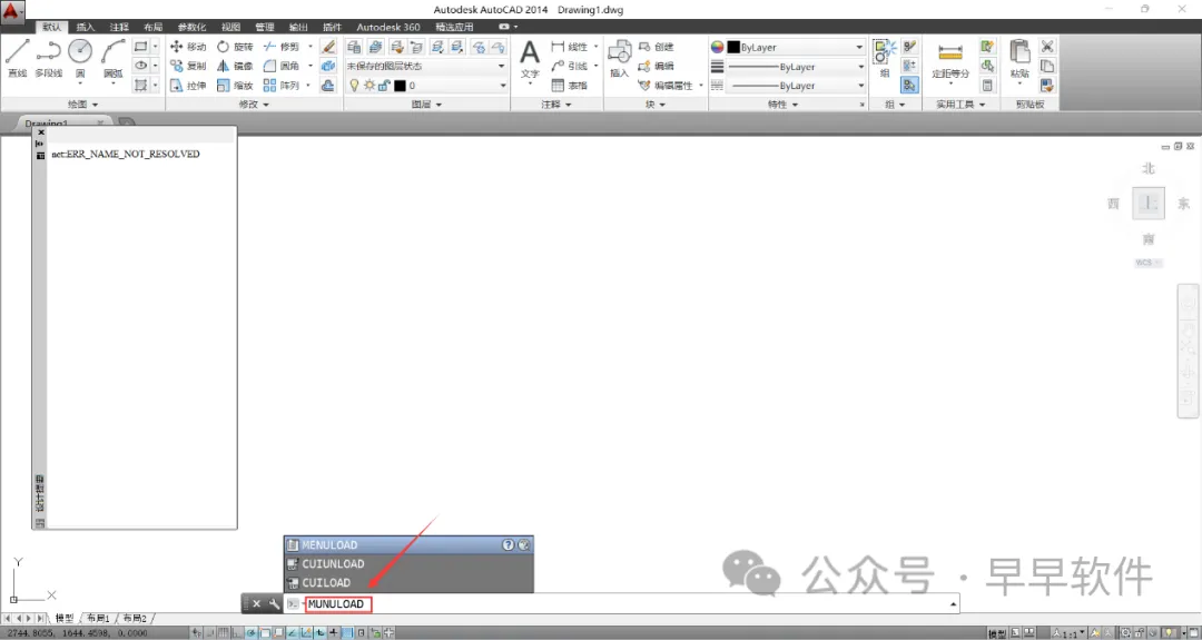 21、右键点击软件界面,输入指令【MENULOAD】,再点击键盘的【Enter】回车键