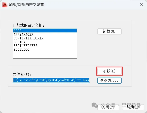 24、点击【加载】(若加载失败,重启AutoCAD 2014软件,弹窗允许软件加载即可)