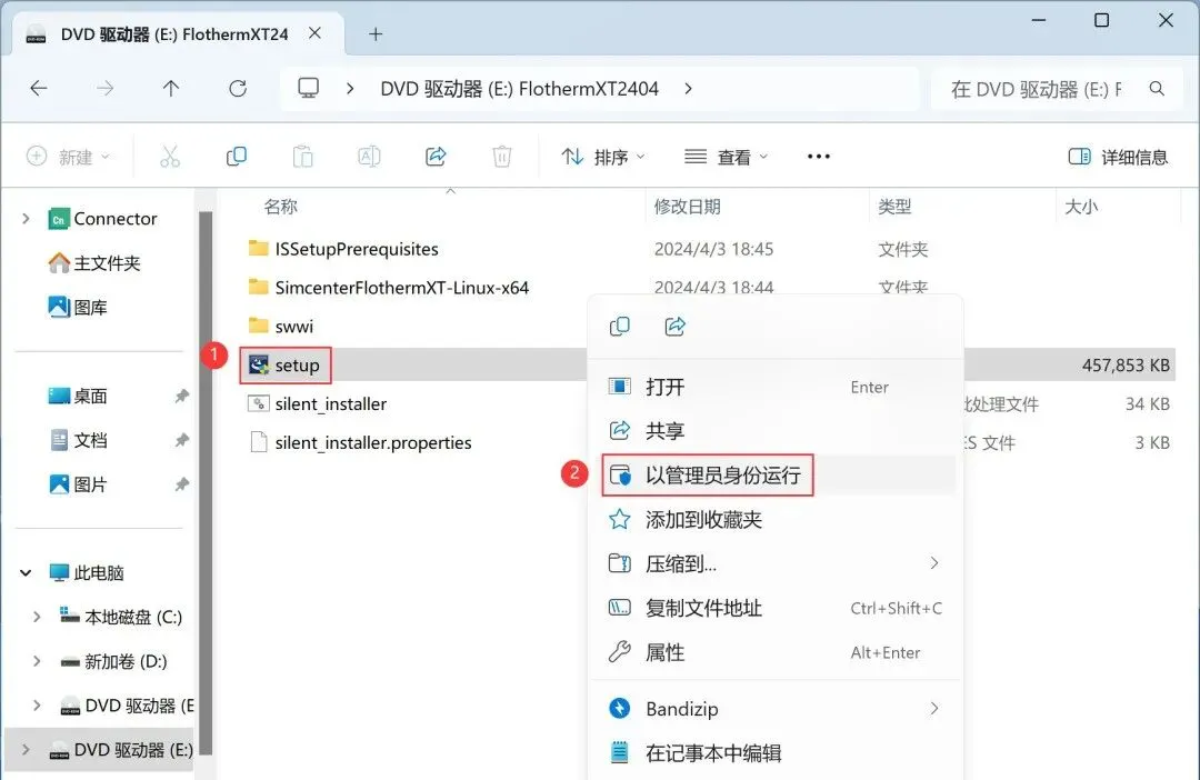 4、找到【setup】应用程序,右键选择【以管理员身份运行】它
