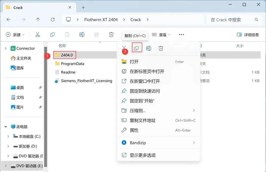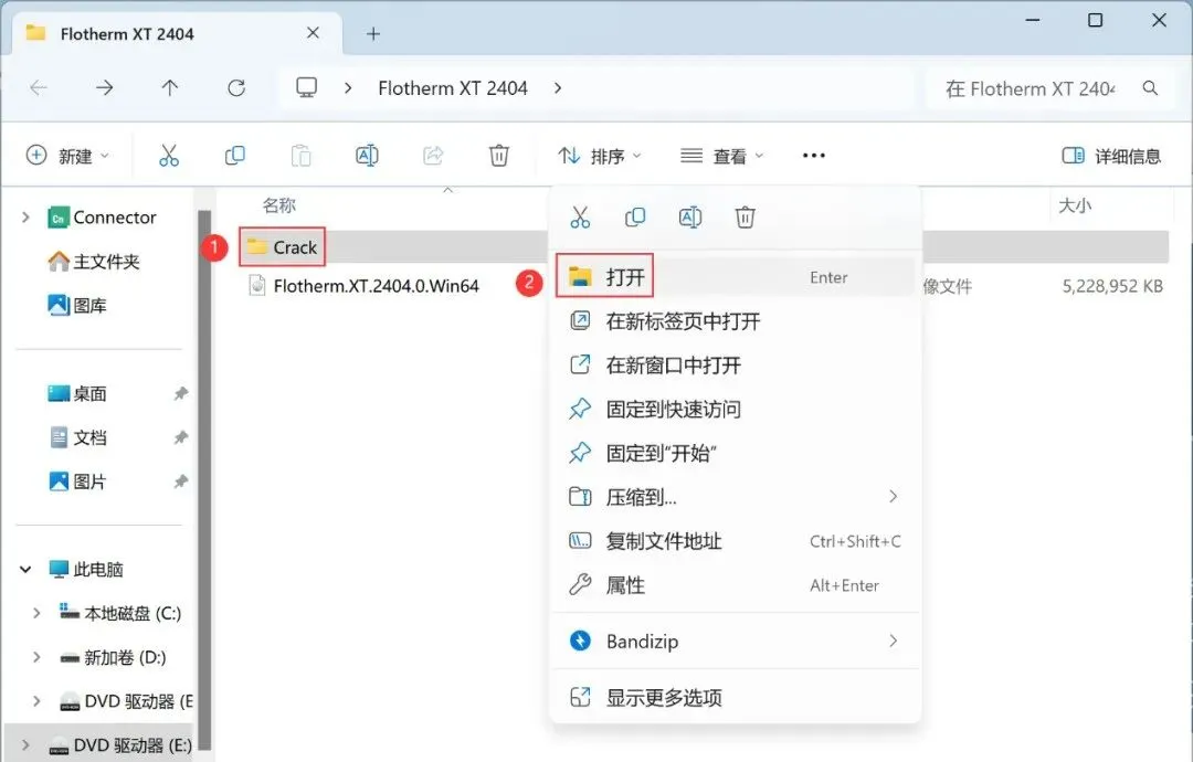 15、回到Flotherm XT 2404文件夹,找到【Crack】文件夹,右键【打开】它