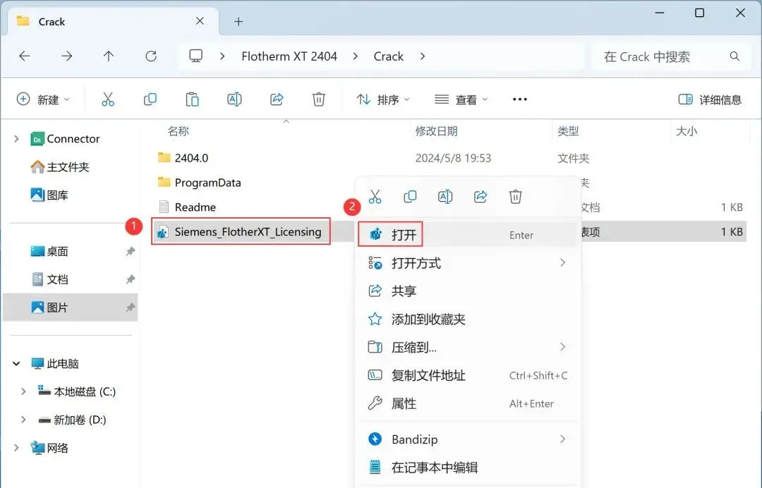 23、回到Crack文件夹,找到【Siemens_FlotherXT_Licensing】文件,右键【打开】它